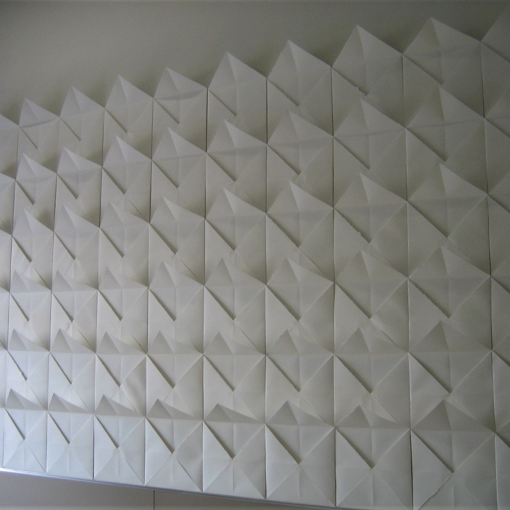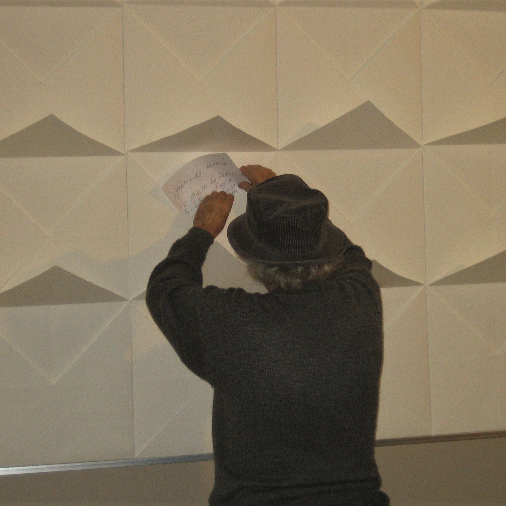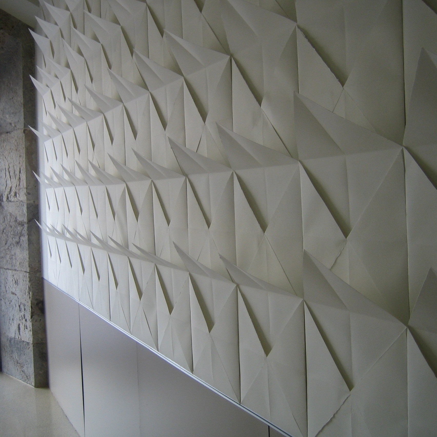 2010 | El proyecto Carta blanca consiste en ensamblar cartas de color blanco hechas con papel plegado, formando en la pared un gran receptáculo para la luz y el pensamiento. El lápiz y el papel unidos de la mano. A partir de aquí todas las relaciones son posibles a través de la escritura. El espectador podrá participar introduciendo su escrito en una carta. Al final la obra se construirá entre todos.